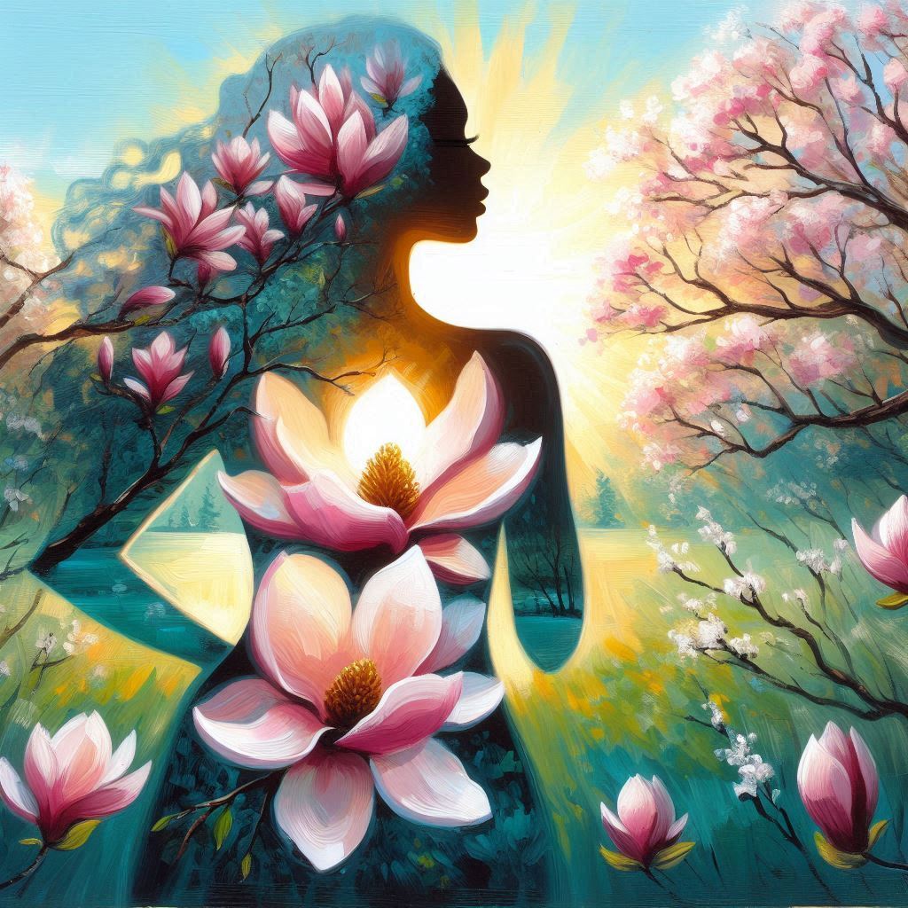 Pokud se cítíš „vyprahlá“ nebo máš pocit, že tvůj život je nyní jen holé dřevo bez života, nalaď se na frekvenci tohoto stromu. Dovol si zářit, nečekej, až budeš „připravená“. Pokud v tobě něco pulzuje, nechej to vyrazit na povrch hned. Tvá hodnota není vytvářena výkonem, ale vnitřním klidem. Představ si své dlaně nebo své srdce jako velké, voskově bílé květy magnólie na suchém stromě tvých starých zvyků. Naplno vnímej, jak tato čistá energie vnitřního světla proráží kůru starého já: „Rozkvétám, protože je to má přirozenost, nikoli z čekání, kdy mi k tomu svět dá ideální podmínky.“