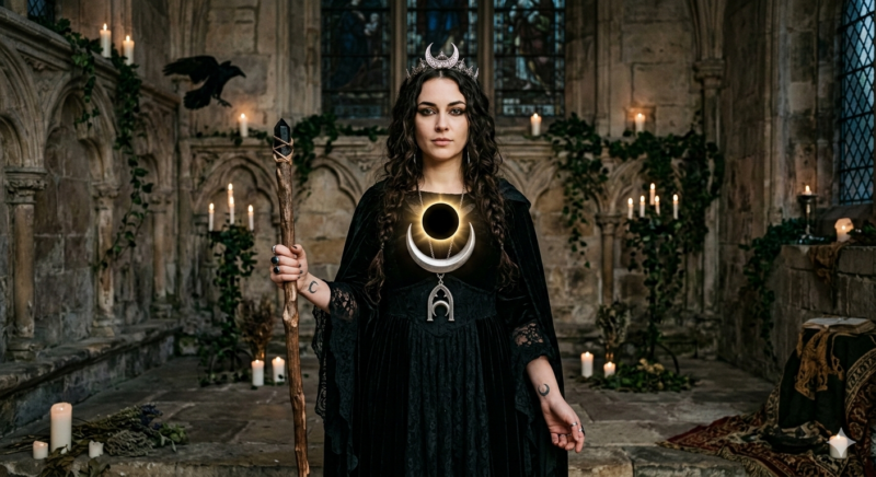 Čarodějka s energií archetypu gotické duše nenosí masku odlišnosti, ale vznešenosti a melancholie. Její gotický aspekt není o smutku, ale o schopnosti vidět krásu v pomíjivosti a posvátnost v temnotě, vědomě vytvářet malebnou estetiku stínu a světla. Její energie je jako černý samet – pohlcuje hluk světa, aby vytvořila prostor pro vnitřní ticho. Stříbro jejích šperků odráží měsíční svit, symbolizuje intuici, která září i v nejhlubší noci. I když její zevnějšek může působit odtažitě, divně nebo přísně, její novopohanské vyznání je tvořivý proud, který souzní s jemnou i divokou alchymií přírody. Je to čarodějka, která neovládá přírodu silou, ale naslouchá přírodě s úctou milenky boha Slunce. Jako lomený oblouk gotického okna, i ona směřuje svou pozornost vzhůru k nekonečnu, zatímco její základy jsou pevně zapuštěny v chladné, úrodné zemi předků, která tvoří architekturu jejího ducha.