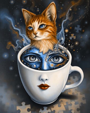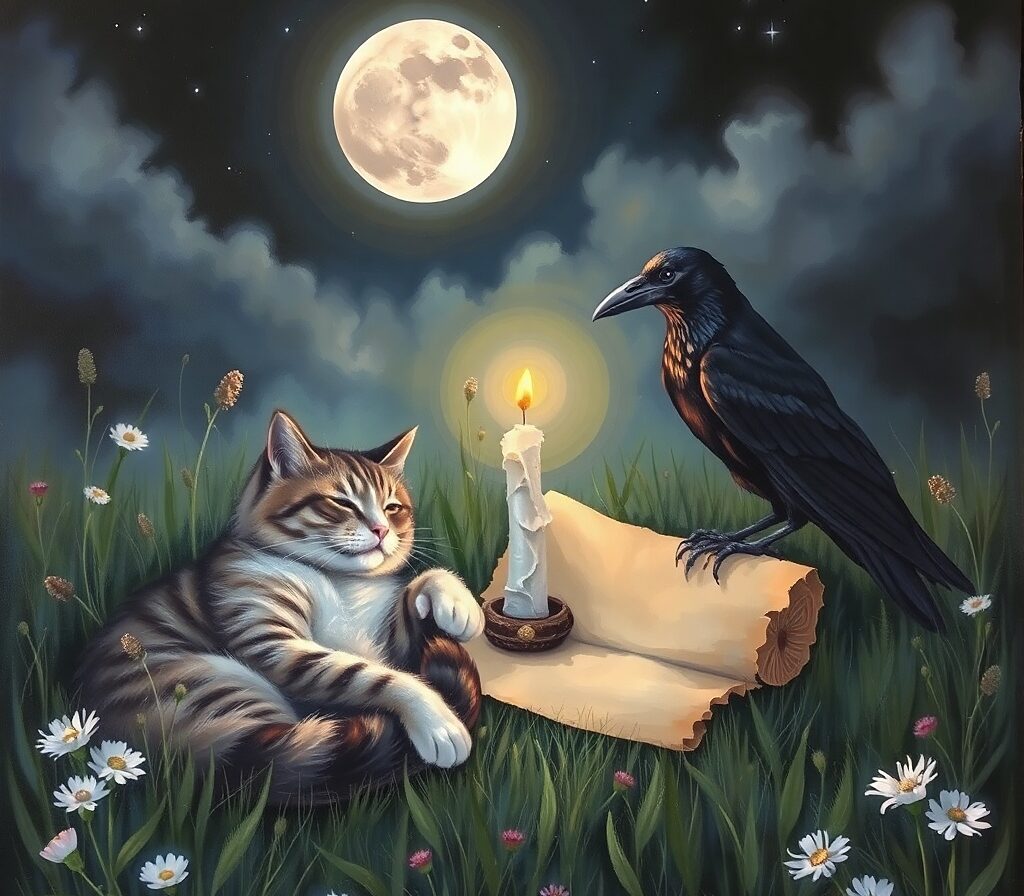 Kočka a havran – zdánlivě jsou to protiklady, ale v alchymii duše tvoří dokonalý celek. Na první pohled působí jako noc a den. Havran je vertikální mysl, vzdušná, hledící z výšin vesmírných dálav. Kočka je horizontální mysl, pozemská, tělesná, citová. Toto spojení vytváří celistvou bytost, tvořivé vize přicházejí skrze prožitek. Vnitřní prožívání není asketické nebo odtržené od světa. Naopak, čím výše povýšíme naše smysly, tím jasnější budou naše pozemské vize.